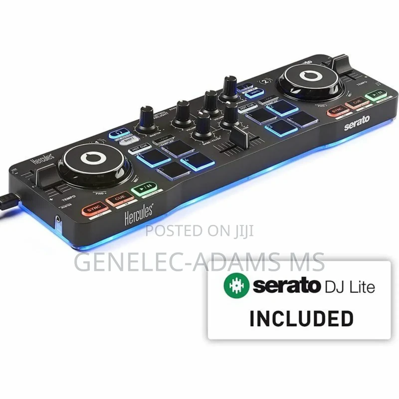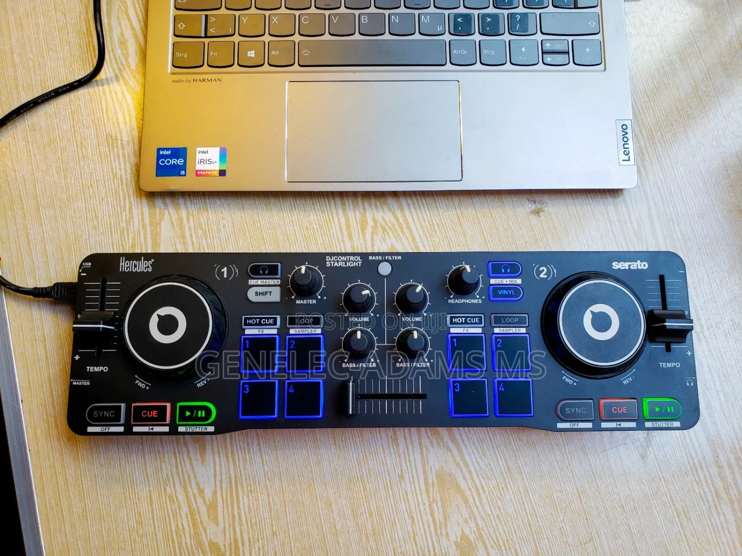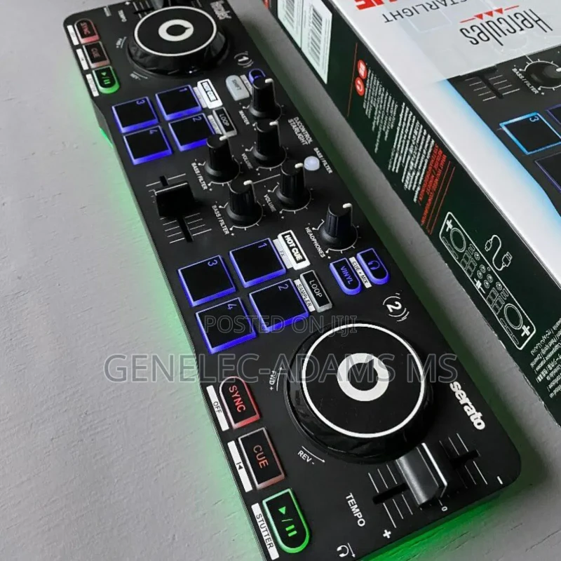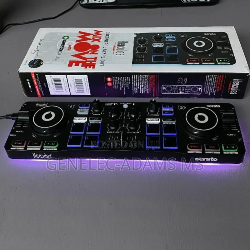 Brand new dj controller with built-in usb audio interface compatible with serato dj pro pressure recognition on the jog wheels solid buttons and controls main output: 3.5 mm stereo mini jack headphone output: 3.5 mm stereo mini jack illuminated base plate with rgb stroboscope for use with pcs or notebooks with usb 2.0 or later and operating system: windows 7, 8, 10 / macos 10.11 & later weight: 0.5 kg compatible with serato dj pro and ios djay app delivery contents: djcontrol starlight, usb cable, serato dj lite player